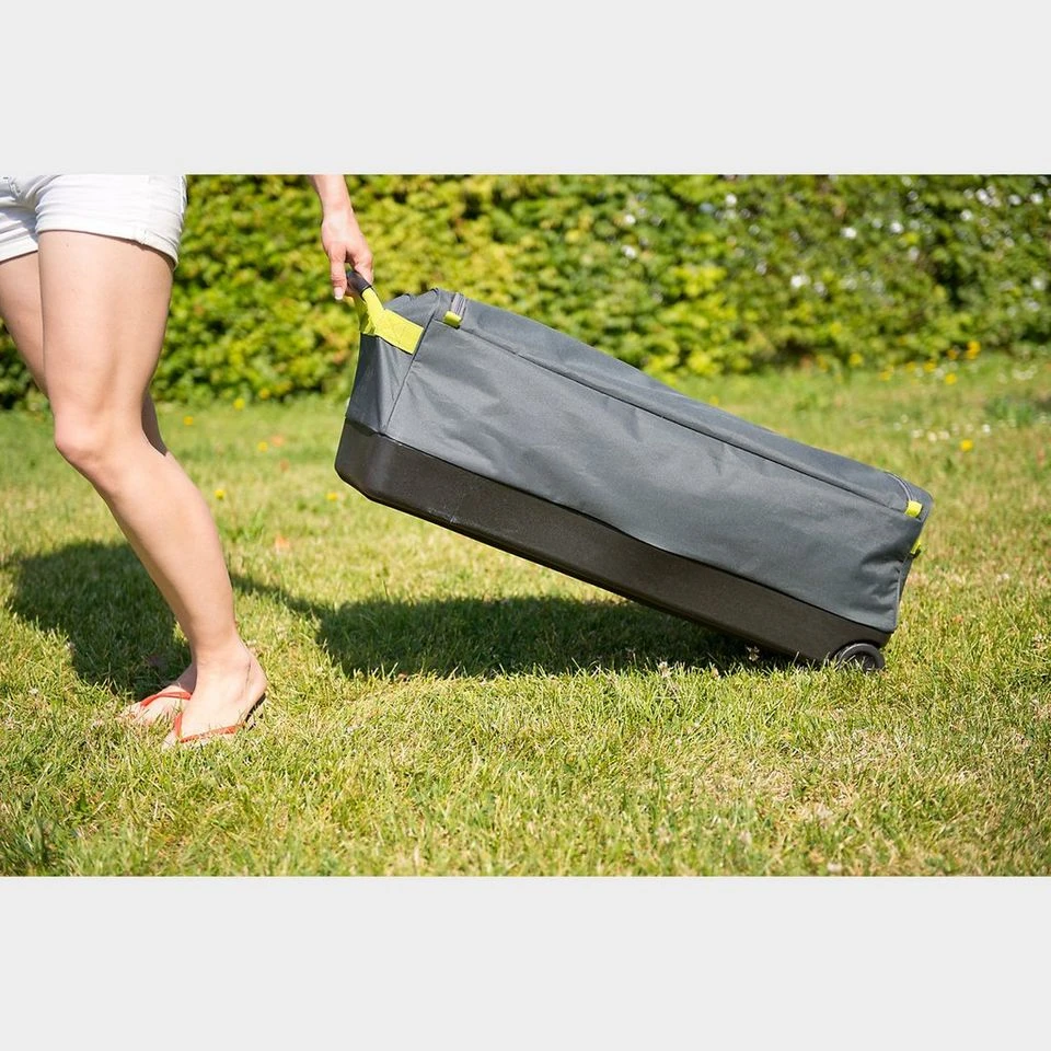 The front door is hinged (like a proper door) which makes getting in and out a lot easier than most tents, and the wheeled carry bag makes it easy to get from the car to your chosen pitch. A clever combination of design and practicality.