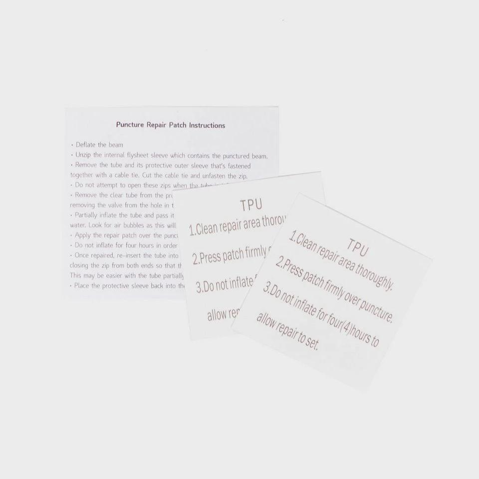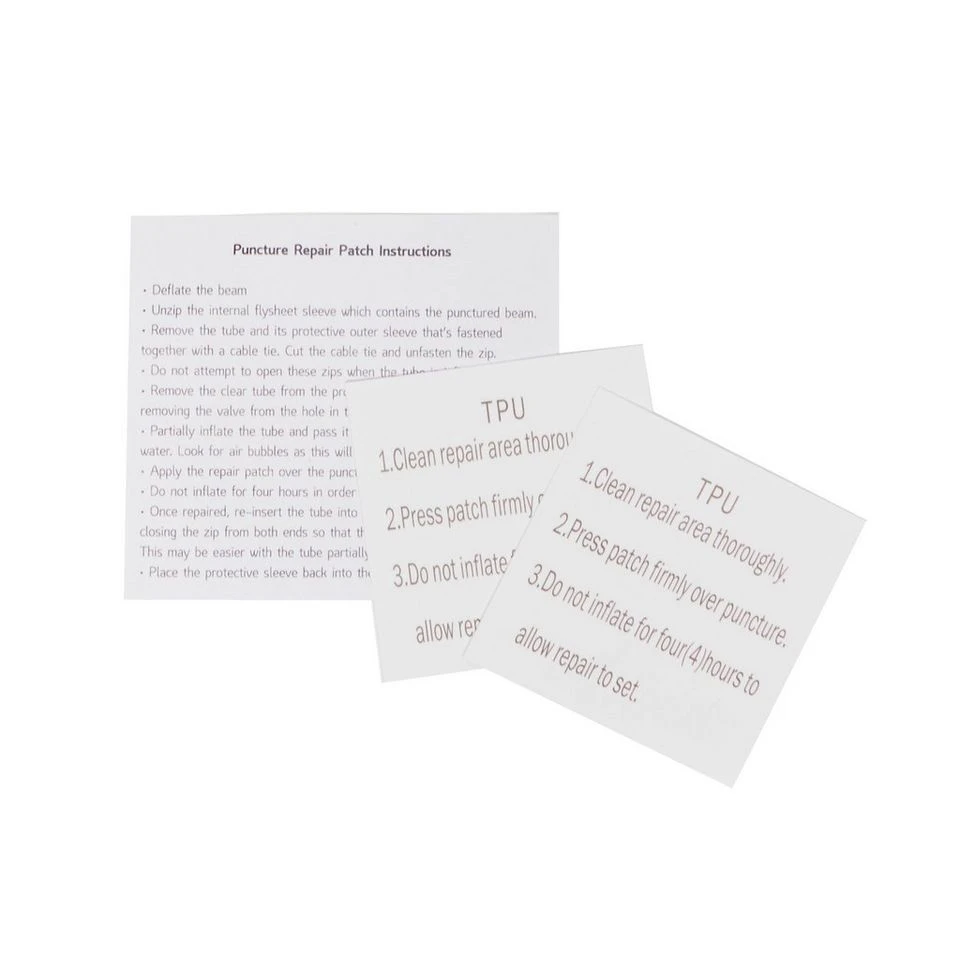 Replacement puncture repair patches for inflatable tents. Easy to use and very reliable. For use in the field.Â