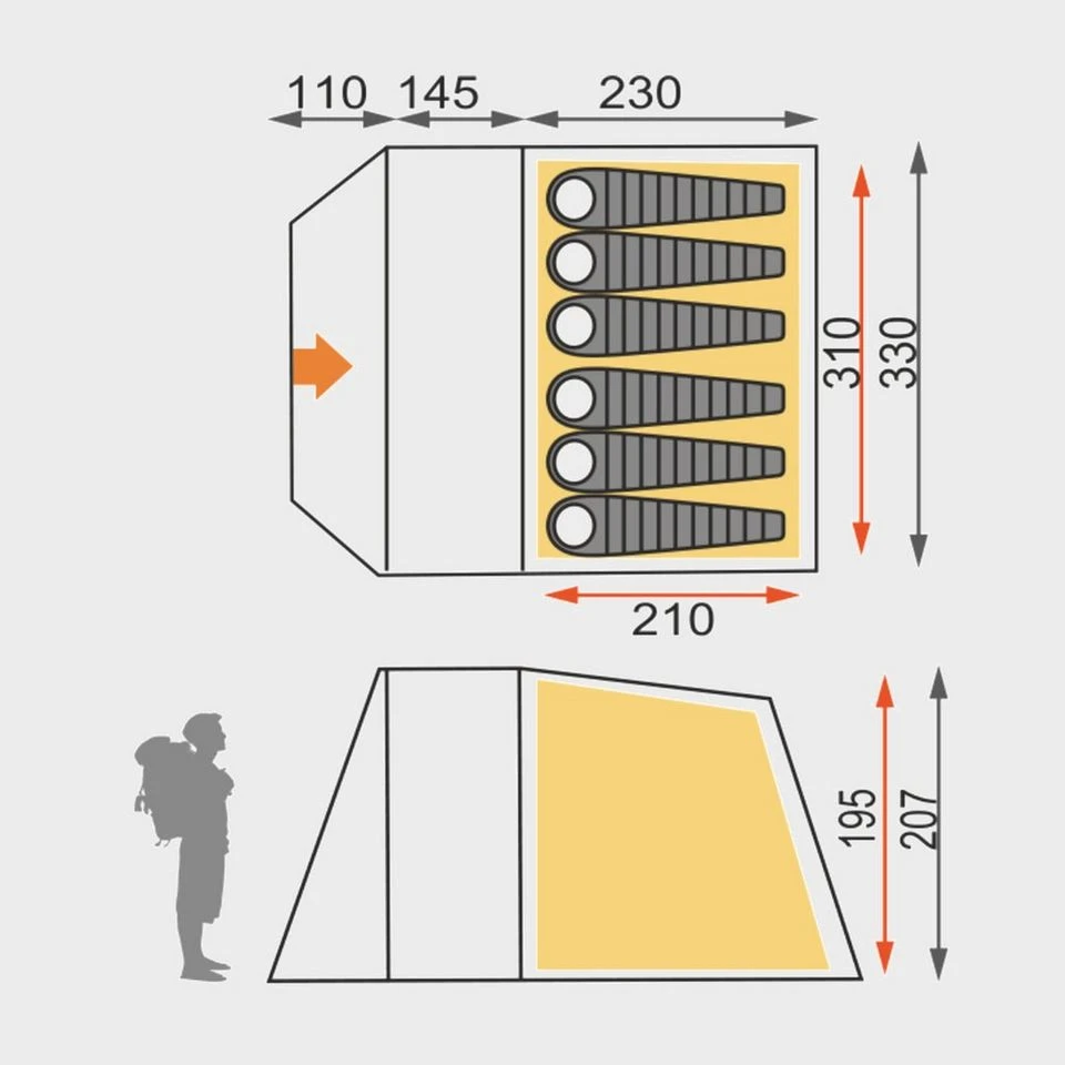 The Sendero 6 is a budget-friendly family tent from Eurohike. Itβs easy to pitch and can sleep up to 6 people in the large bedroom section, while the porch area is ideal for storing your muddy boots. It features a fully sewn-in grounds sheet for ultimate waterproof protection from wet ground, whilst ventilation and window panels let plenty of natural light in and condensation out. The bugs will also be kept out by the sewn-in groundsheet.